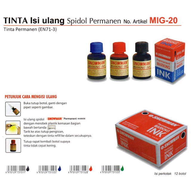 Tinta Spidol Snowman Permanent Refill Ink