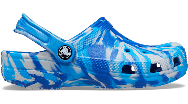 Original. Versatile. Comfortable. All-new marbled effects refresh the iconic clog that started a comfort revolution around the world, charmed kids everywhere and made parents fall in love with their easy-to-wear, easy-to-clean design! Our new marbled Croslite™ foam creates a colorful effect that is completely unique. While all marbled shoes have the same wavy look, no two shoes are exactly alike. Crocs Classic Clogs feature lightweight Iconic Crocs Comfort™ and a color for every personality, and remind kids of all ages to go out and play. Toddler Classic Marbled Clog Details: Marbled effect unique to every shoe Incredibly light and fun to wear Ventilation ports add breathability and help shed water and debris Easy to clean and quick to dry Pivoting heel straps for a more secure fit Customizable with Jibbitz™ charms Iconic Crocs Comfort™: Lightweight. Flexible. 360-degree comfort.