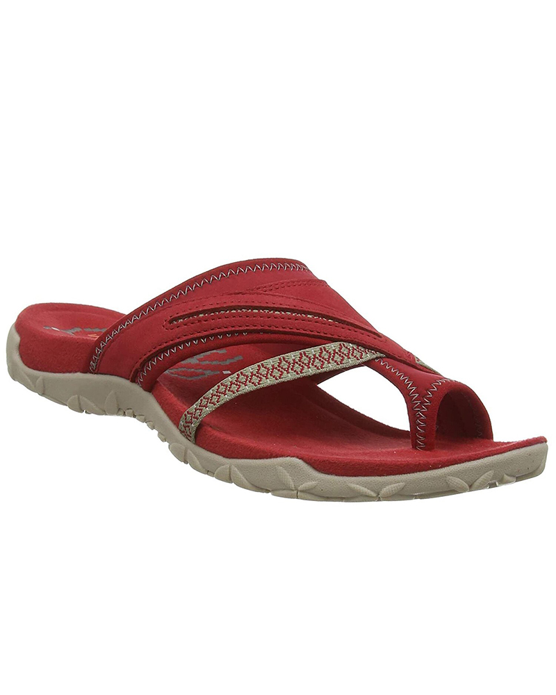 Toe Post Breathable Mesh-And-Leather Sandals, Red