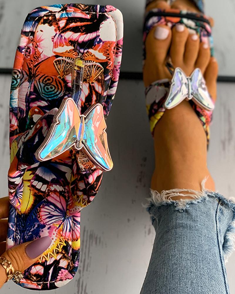 Toe Post Butterfly Pattern Slippers, Multicolor