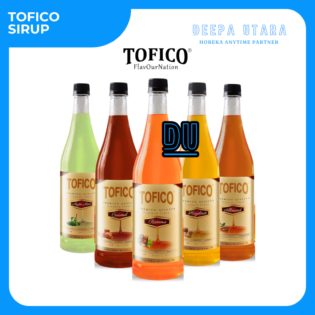 Tofico syrup dengan rasa yang premium cocok untuk menjadi perisa berbagai di kudapan manis atau minuman anda. Tersedia dalam kemasan botol plastik 1000 ml atau 1 liter, cocok untuk kebutuhan dalam skala besar seperti hotel, restaurant atau cafe. Tersedia dalam berbagai pilihan rasa; Caramel, Almond, Rum dan Mojito Mint, Hazelnut.