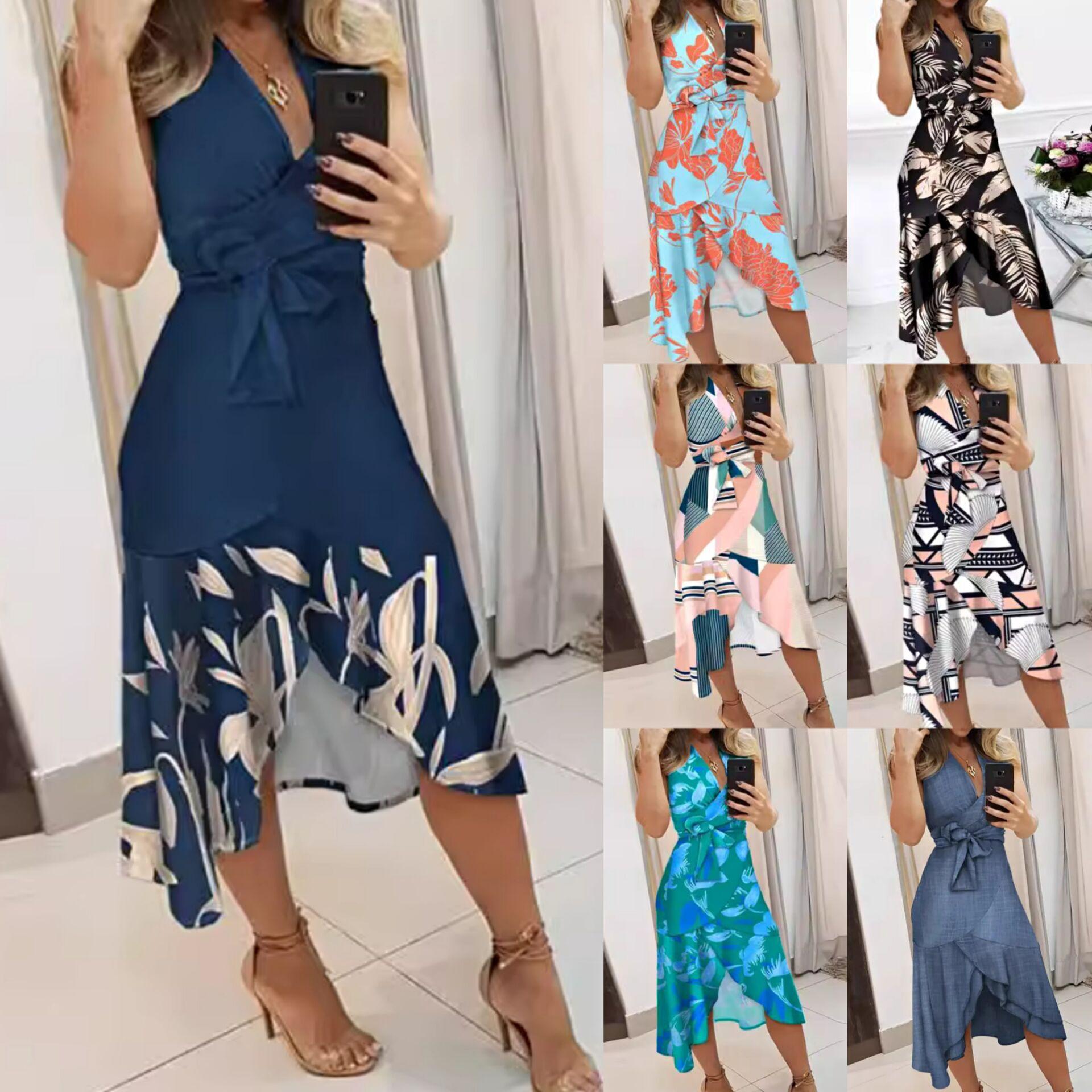 Tooxika Новое женское платье с короткими рукавами и принтом, с v-образным вырезом, подтянутой талией и длинной юбкой на шнуровке