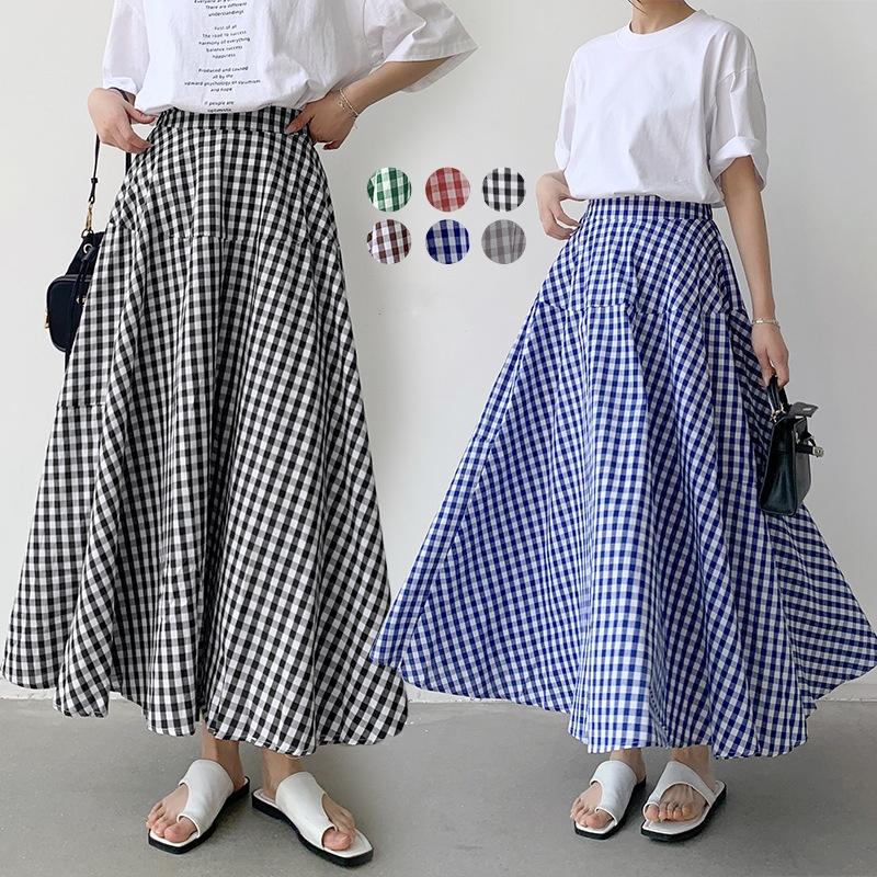 Tooxika, новая милая деревенская клетчатая юбка средней длины с эластичной талией и большой распашной длинной юбкой в пол для женщин