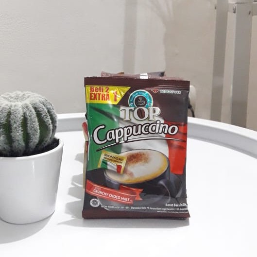 Top coffee minuman serbuk kopi instan rasa cappucino dengan crunchy choco malt, dari perpaduan biji kopi arabica dan robusta yang berikan kemewahan rasa. Dengan foam yang tebal.