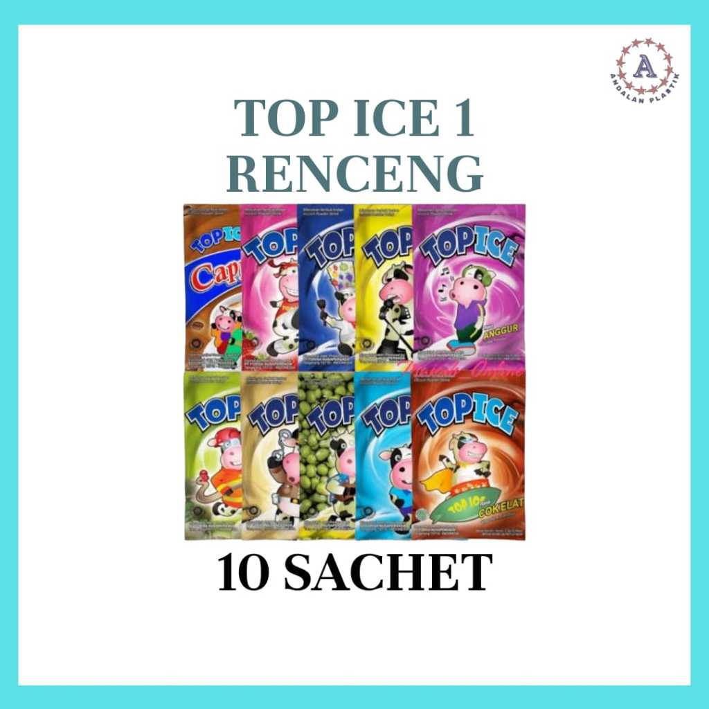 Top Ice adalah minuman bubuk rasa yang populer di kalangan anak-anak dan remaja. Dibuat dengan susu sebagai bahan utama, Top Ice menawarkan kesegaran dan kelezatan dalam berbagai rasa. Dikemas dalam sachet praktis, Top Ice mudah disajikan dengan air panas atau dingin.