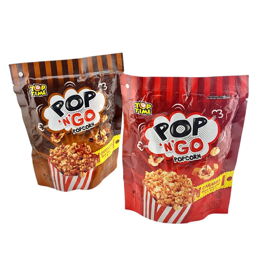 merupakan camilan persembahan dari TOP TIME. Camilan popcorn persembahan ini terbuat dari jagung pilihan yang diolah bersama krim yang lezat. Ideal dinikmati saat menonton film, mengobrol bersama sahabat, ataupun sebagai teman perjalanan. Popcorn POP n GO hadir dalam kemasan Pouch berisi 20 gram