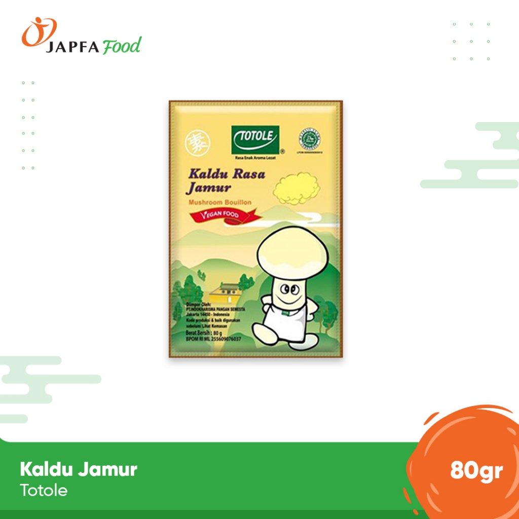Totole Jamur adalah penyedap rasa yang memiliki bahan dasar kaldu jamur. Terbuat dari ekstrak jamur, beras, protein sayur, tepung jagung, dan gula. Teksturnya berbentuk butiran kecil atau granular. Kaldu jamur ini merupakan penyedap rasa yang cocok untuk vegetarian, karena tidak mengandung kolesterol dan gluten free. Dapat digunakan sebagai tambahan rasa pada semua masakan.