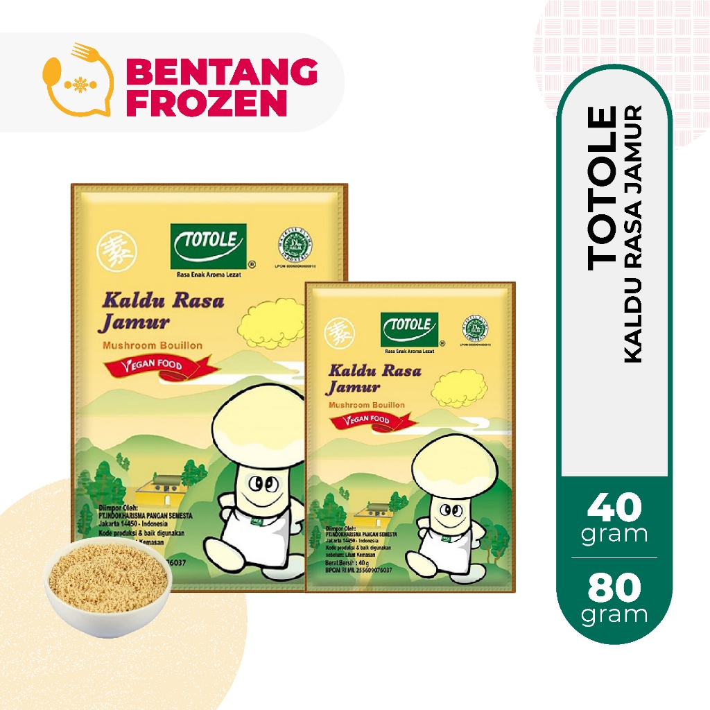 Totole Bumbu Kaldu jamur pengganti kaldu daging. Kaldu jenis baru yang dapat dinikmati oleh vegetarian maupun non vegetarian.