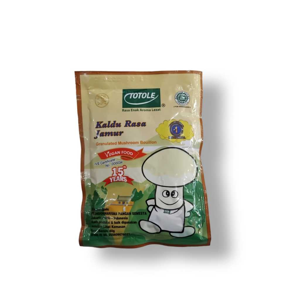 Kaldu Jamur Totole merupakan penyedap rasa instan yang alami dan bernutrisi. Memiliki tekstur granule / butiran yang mudah dijadikan sebagai penambah cita rasa dan aroma yang istimewa pada masakan.