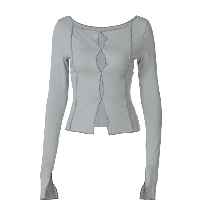 Women Fashion Ripped Mid-length Jeans T-Shirts 2024 Fall New Long Sleeve Denim Tops Sexy Boyfriend Loose Female Thin Coats S-XL