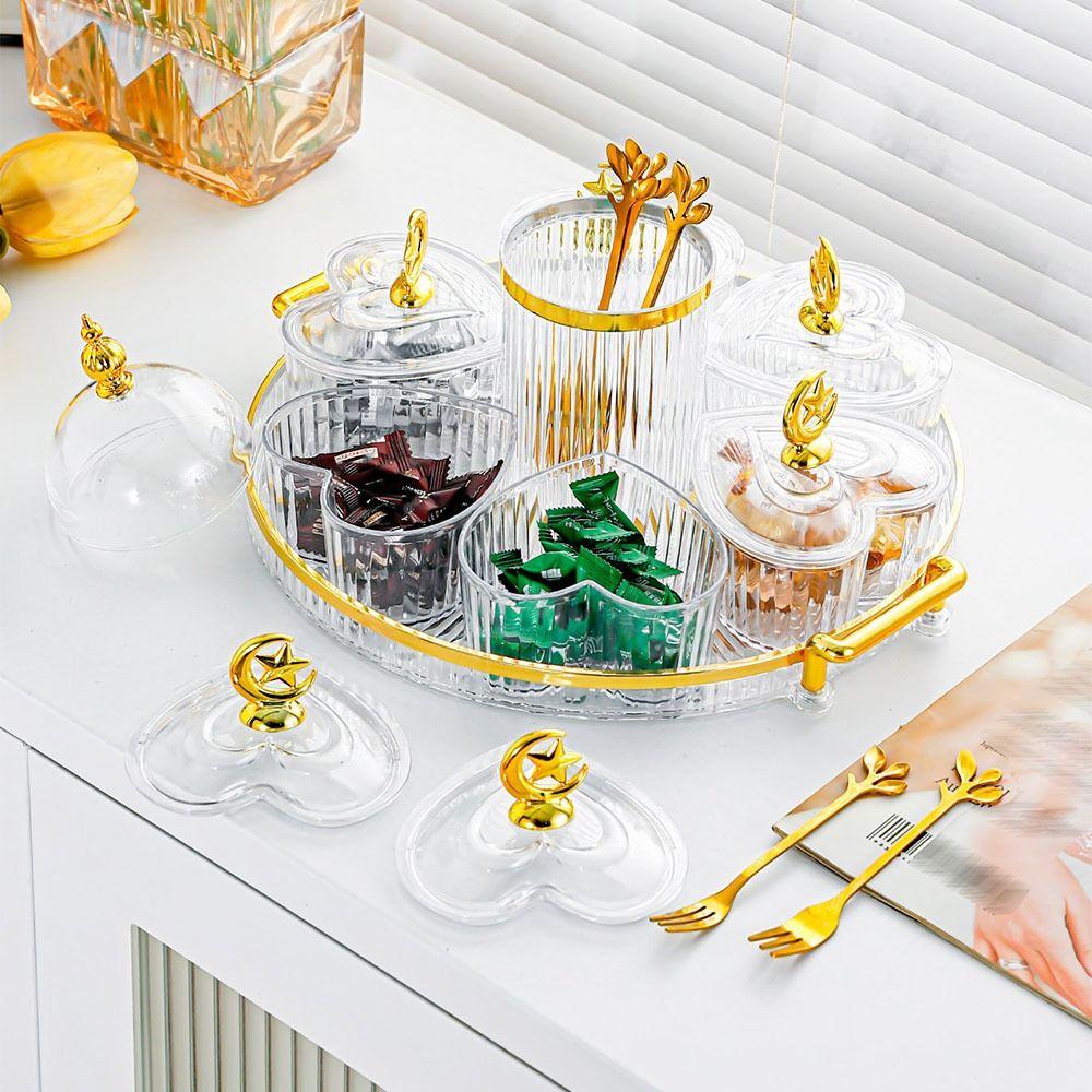 Transparent Dried Fruit Plate With Cover Snack Serving Container Storage Jars Home Kitchen Amber-A