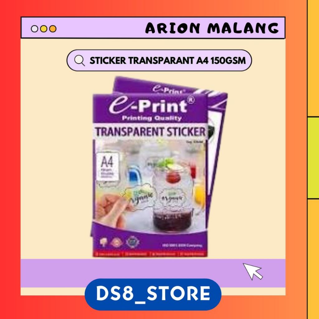 Transparent Sticker A4 / Kertas Stiker Transparan A4 E-PRINT [WATERPROOF]