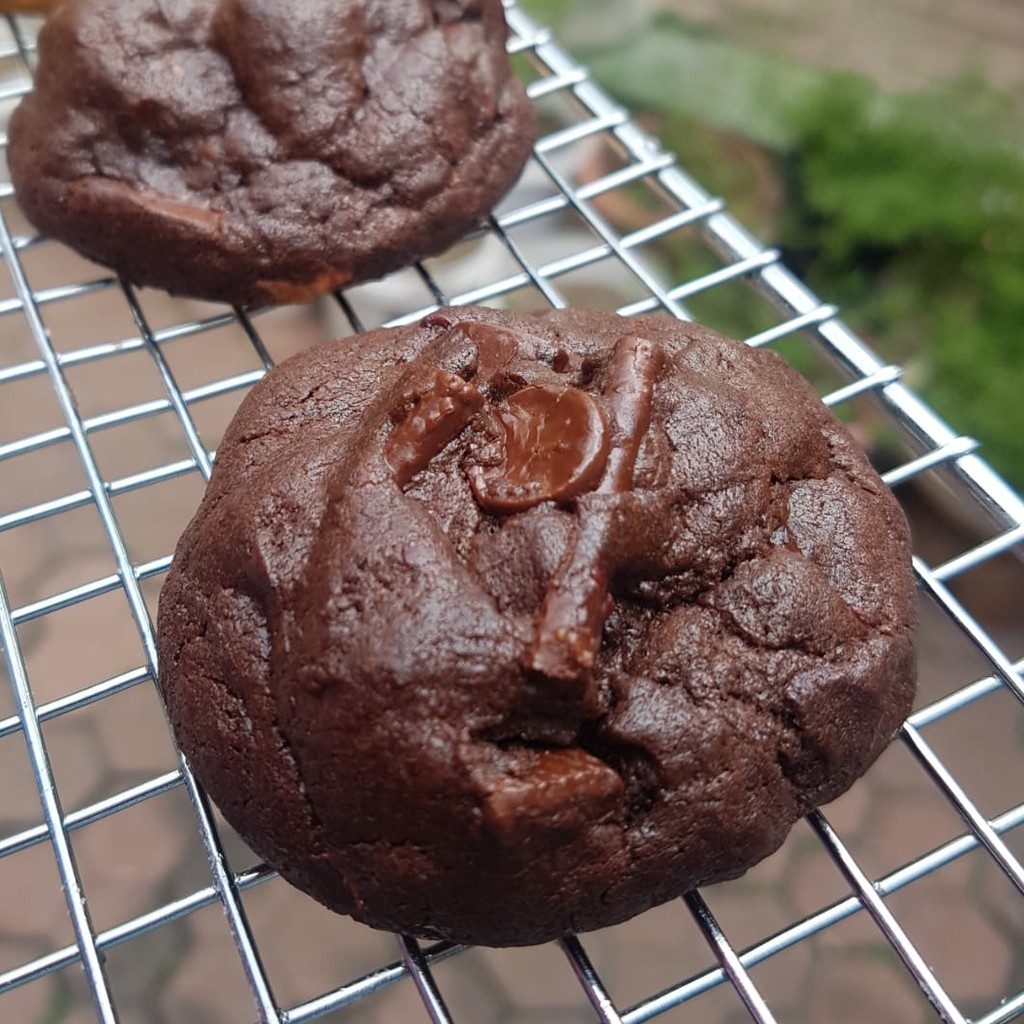 Chocolate cookie dough + chocolate chunks + dark & milk chocolate chips! Dibuat dengan bahan premium pilihan, fresh from the oven ;)