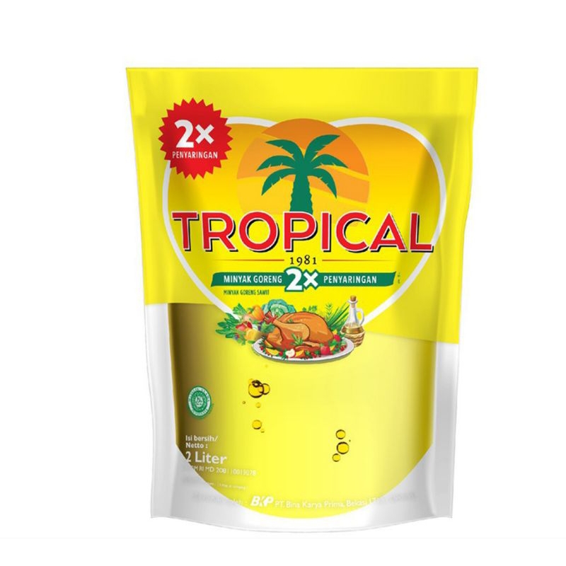 TROPICAL Minyak Goreng Pouch 2 L merupakan minyak goreng dari kelapa sawit pilihan yang diproses dengan dua kali penyaringan sehingga menghasilkan asam lemak tak jenuh dan menjadikannya tetap jernih, lebih tahan panas.