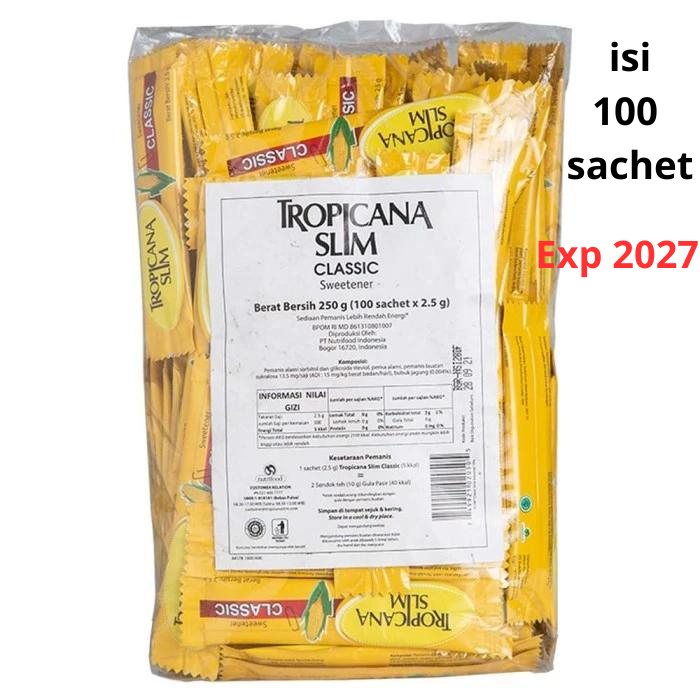 Tropicana Slim Sweetener Classic merupakan salah satu produk unggulan Tropicana Slim yang telah dipercaya masyarakat Indonesia sejak 40 tahun lalu, kini juga dapat dinikmati di 30 negara di dunia. Anda dapat merasakan manisnya Tropicana Slim Sweetener Classic tanpa rasa was-was gula yang terkandung didalamnya, produk ini bebas gula dan juga rendah kalori. Sehingga cocok dikonsumsi untuk mendukung program diet rendah kalori Anda dan mencegah penyakit diabetes. Dengan hanya mengandung 5 kalori saja, Tropicana Slim Sweetener Classic ini dapat memberikan rasa manis yang sehat untuk berbagai jenis minuman Anda