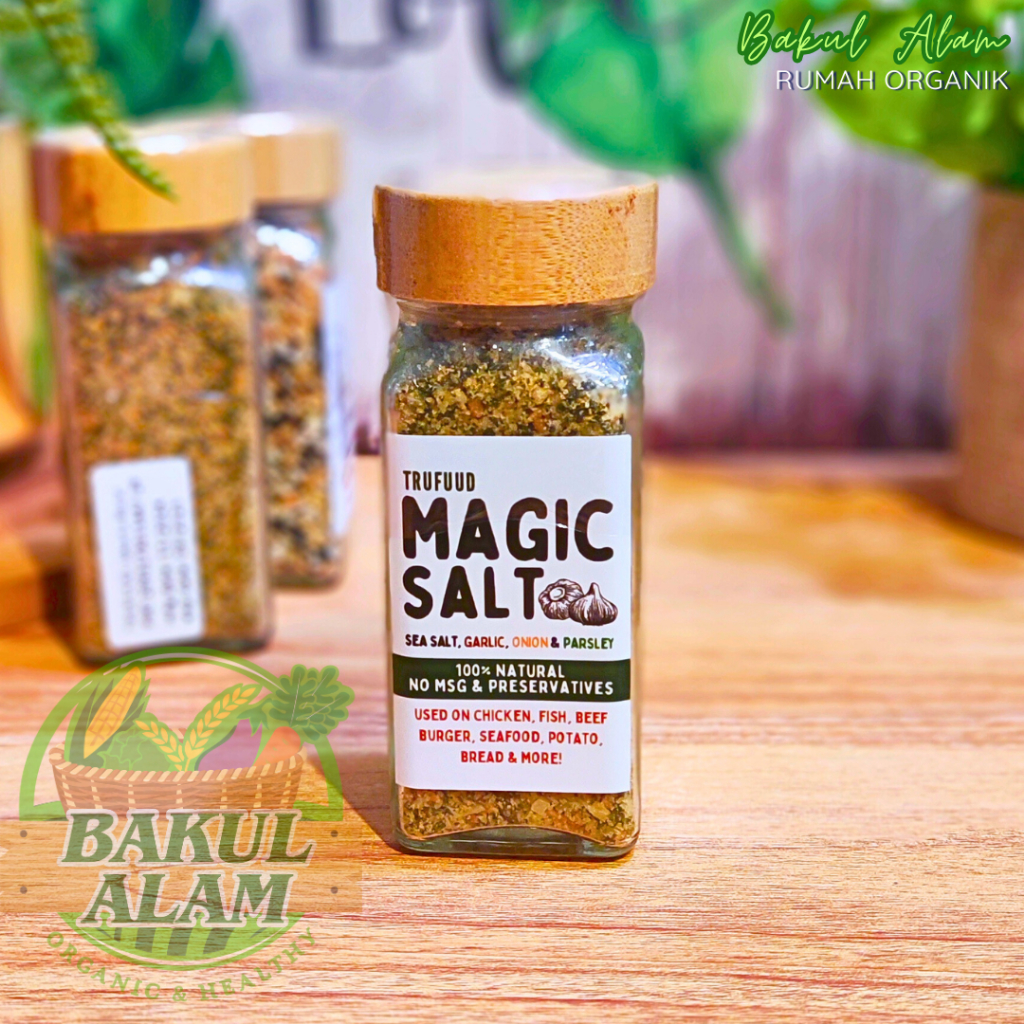 Trufuud Magic Salt merupakan bumbu instan umami untuk olahan makanan dengan cita rasa garlicky yang asin gurih. Bisa digunakan untuk memasak ayam, ikan, beef burger, seafood, kentang, roti & masih banyak lagi.