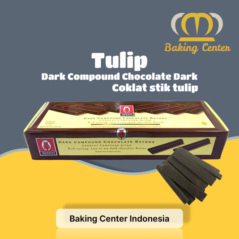 Tulip coklat batang dengan rasa dan aroma coklat yang kuat bahkan setelah di panggang. Sebuah pilihan ideal untuk roti manis, croissant, kue kue dan produk produk bakery lainya.