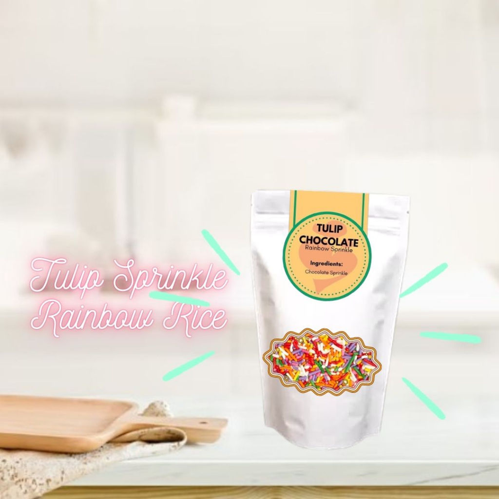 Tulip Coklate Meses Rainbow tersedia dalam 3 ukuran yaitu 100 gr, 250 gr dan 500 gr.