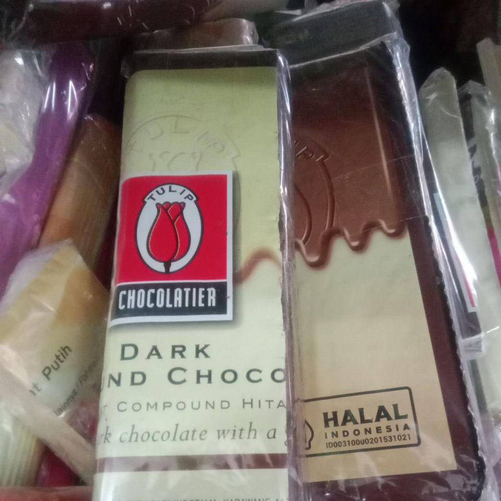 Coklat compound merk tulip berat kurng lbih 200grm. memiliki rasa manis, cocok untuk bahan tmbhan brownis dan topping aneka kue.