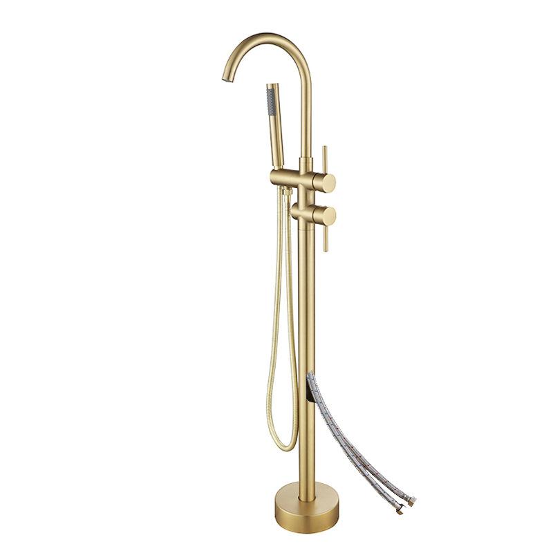 Tuqiu Ванная комната Ванна Смеситель + Ручной Душ Отдельно Стоящий Матовый Золотой Роскошный Смеситель Для Ванны Напольный Монтаж