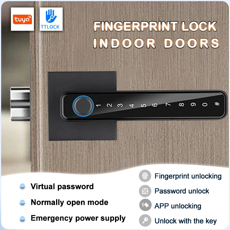 Tuya TTLOCK APP Control Door Locks Biometric Fingerprint Locker BT Smart Entry Home Handle App Unlock Digital Intelligent Lock