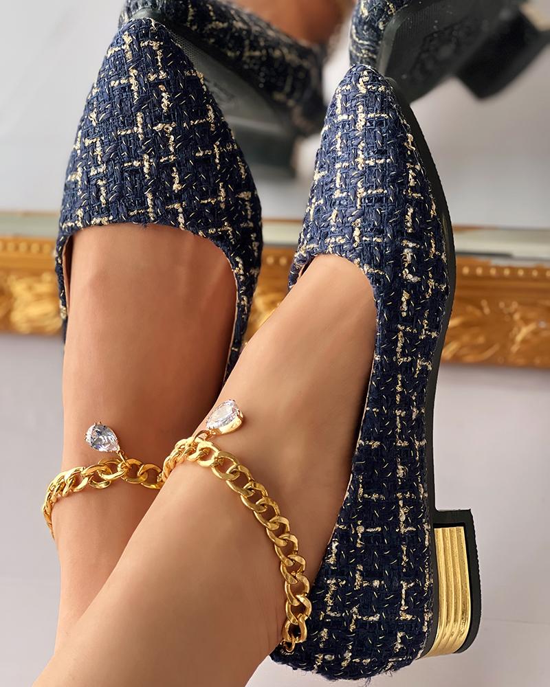 Tweed Slip On Point Toe Loafers, Blue