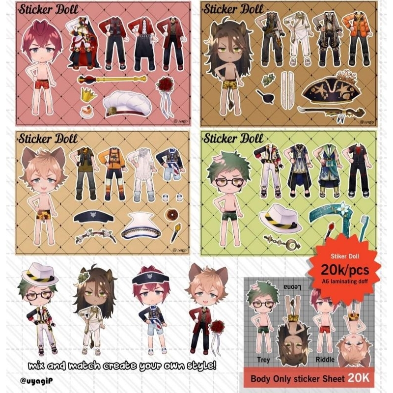 Twisted Wonderland Sticker Sheet Doll Riddle Leona Ruggie Trey