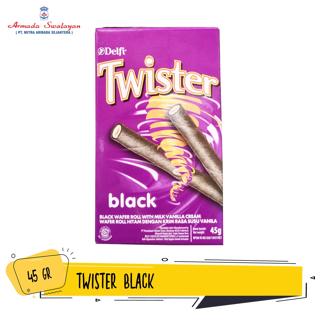 Delfi Twister, wafer roll isi krim yang melimpah dan lezat, cocok untuk menjadi camilanmu setiap saat! Terbuat dari bahan-bahan pilihan berkualitas dan diolah secara higienis dan modern sehingga menghasilkan wafer gulung renyah yang terjamin kualitas dan rasanya.