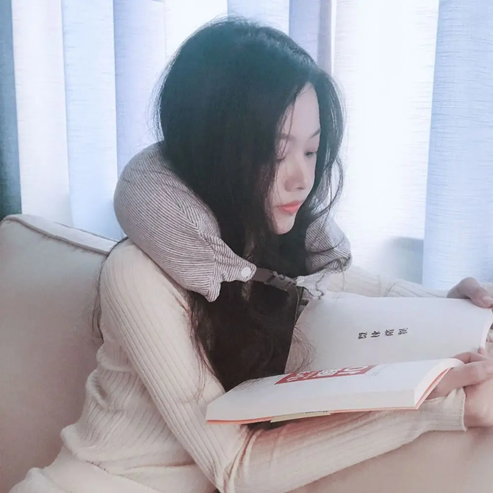 U-образная дорожная подушка для шеи, поролоновые частицы в японском стиле, гибкая рулонная подушка с пряжкой, мягкая поддержка шеи для сна, поясничная поддержка