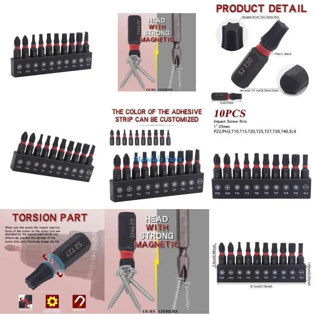 U2JC 10Piece Alloy Torxes Bit Set Precise Machined Metric Size Slip Resistance Professional Tool For Maintenance Tool