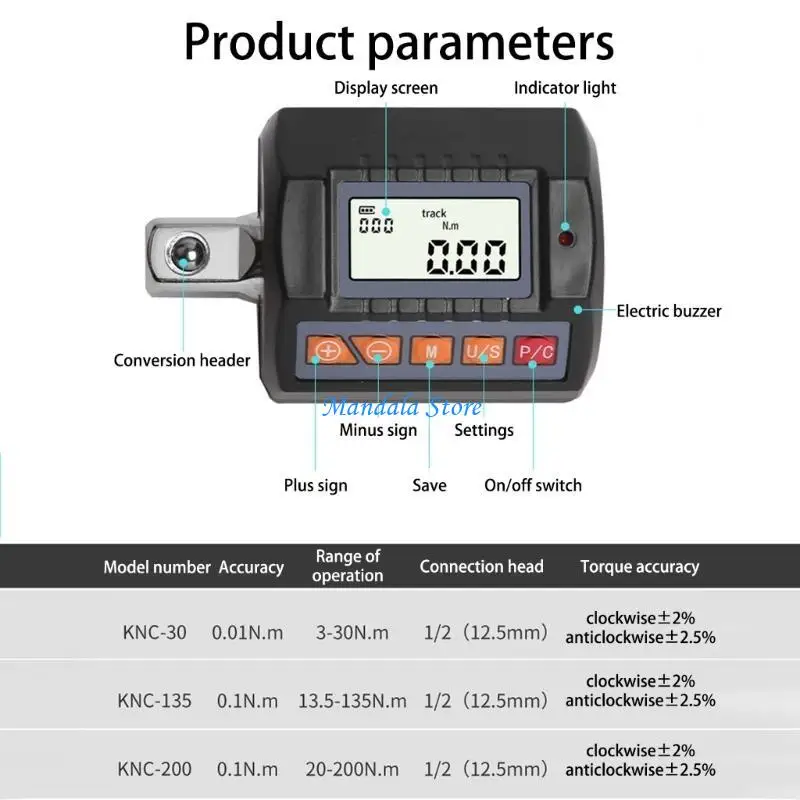 U2JC 4 Torque Unit Torque Meter Wrench Set 1 4 3/8" Adapters Motorcycle Repair