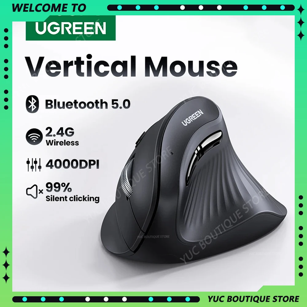 UGREEN Вертикальная офисная мышь Беспроводная Bluetooth5.0 2,4G Эргономичная 4000 точек на дюйм 6 кнопок отключения звука MacBook планшеты ноутбуки компьютерные мыши для ПК