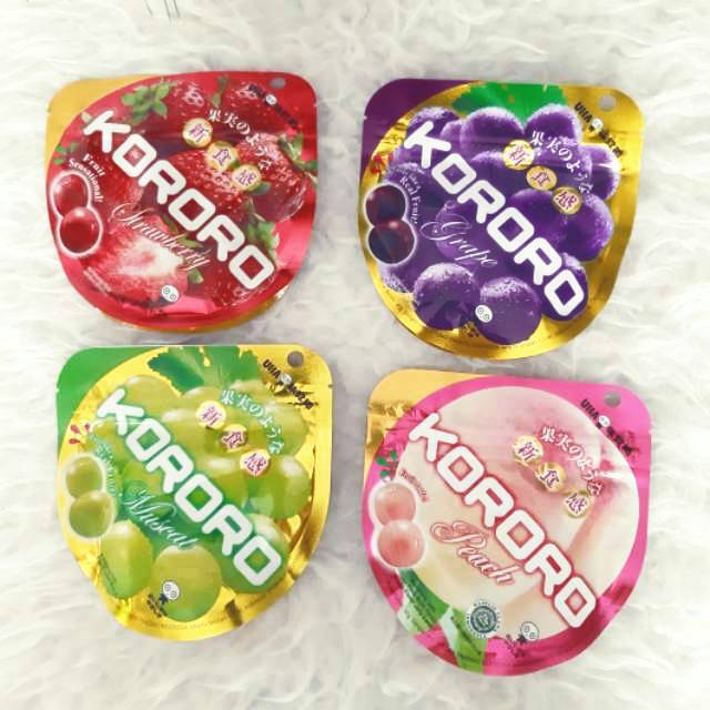 Permen populer dari Japan 100% buah asli Rasanya enak tidak buat batuk. Dibuat oleh pabrik makanan UHA dari Jepang Ada rasa Peach, Strawberry, Grape dan Muscat Gula rendah.