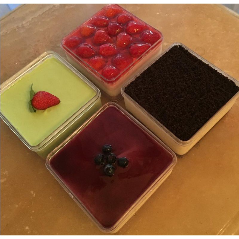 dessert unbaked cheesecake ini ada beberapa varian rasa dengan topping buah segar..