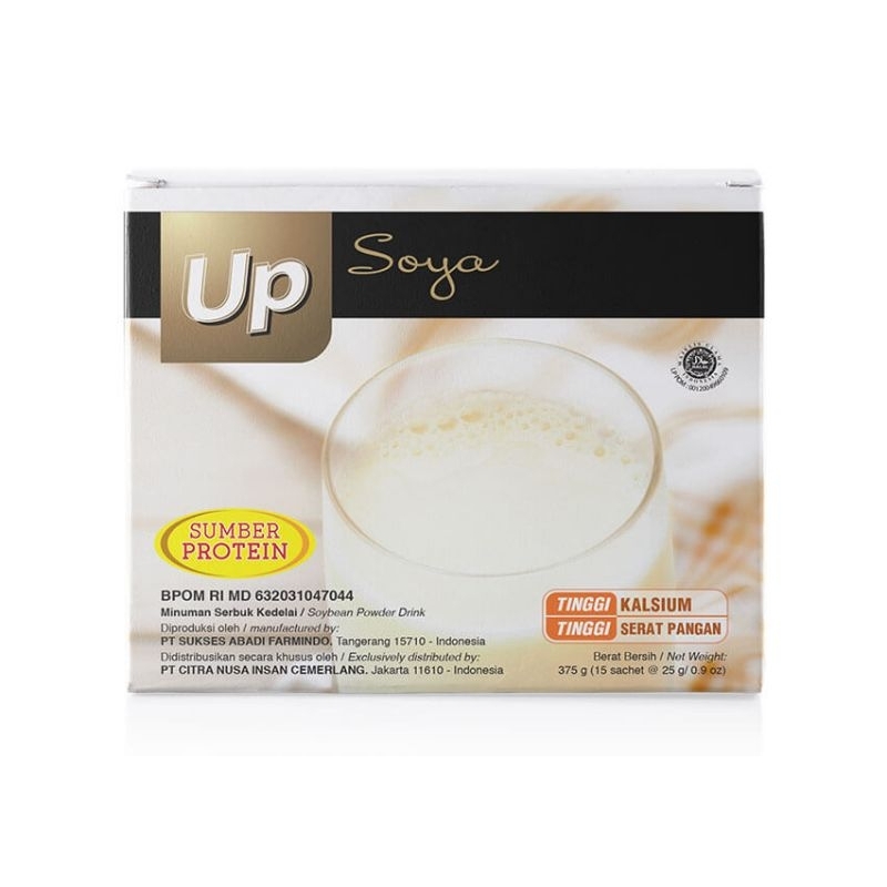 Up Soya dikemas dalam bentuk sachet praktis dan higienis serta memiliki keunggulan tidak langu (aromanya harum) dan kandungan kalsium 5 X lebih banyak dibanding sari kedelai biasa. Segala manfaat kedelai untuk kesehatan cukup dalam satu gelas Up Soya.