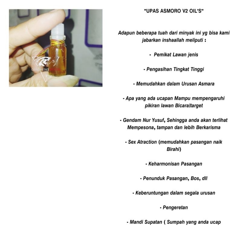 ⚠️Di sarankan pemakai minyak ini melakukan penyelarasan energi dan bersedia merawatnya.
