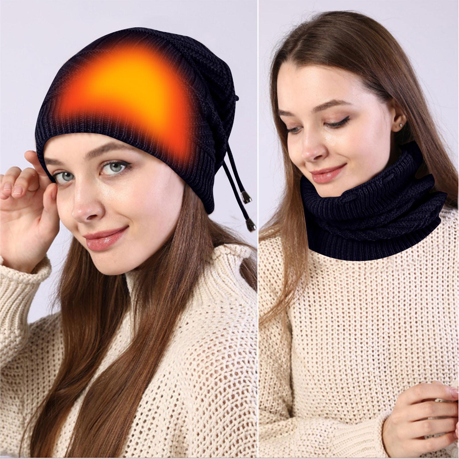 USB Электрический Нагрев Нагревательная Шапка Уличная Вязаная Шапка Двойного назначения И Зимняя Шапка Снуд One Size тёмно-синий