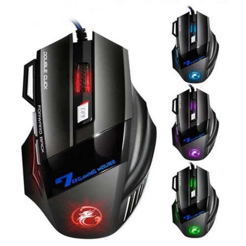 Крутая игровая компьютерная мышь iMice WM5000X7BK.Эргономичный дизайн с выступами под большой палец, безымянный палец и мизинецПереливающаяся светодиодная RGB подсветкаТип датчика: оптическийРазрешение датчика: 1600/2400/3200/5500 DPIКоличество кнопок: 7 (2 основные + кнопка двойного клика + колесико + 2 боковых вперед/назад + кнопка изменения DPI)Очень тихий ход основных кнопок Интерфейс подключения/питания: USB 5 В 100 мАРесурс кнопок: 5 миллионов нажатийУдлиненный кабель в оплетке 1.7 м с защитой от перегибаМатериал корпуса: пластик с приятным покрытиемРазмер: 13 х 8.7 х 3.7 см (максимальные параметры)Вес: 110 г