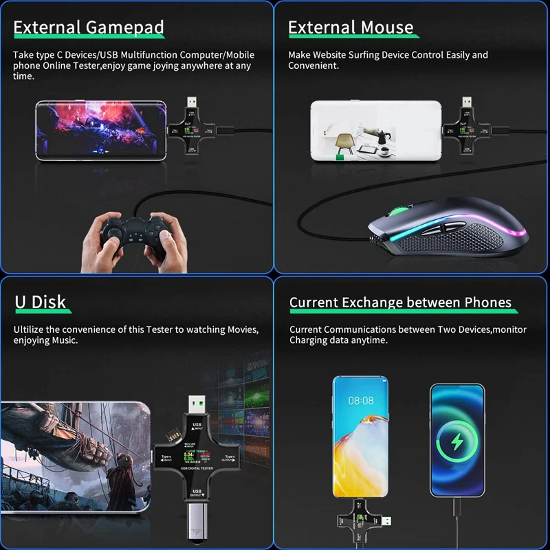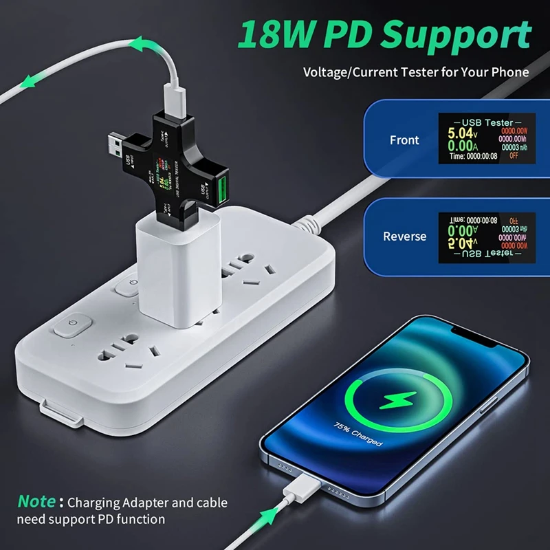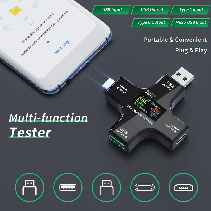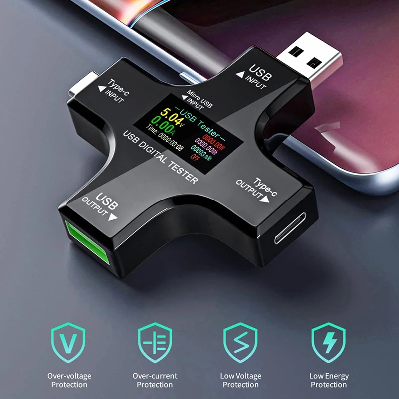 USB-измеритель мощности, Многофункциональный тестер 2-в-1 USB Type-C, цифровой мультиметр, напряжение, ток, мощность,