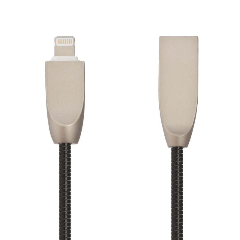 USB кабель «LP» для Apple Lightning 8-pin «Панцирь» в металлической оплетке (черный/коробка)