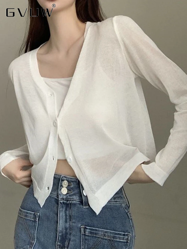GVUW Knitted Sweaters For Women V Neck Single Breasted Long Sleeve Loose Casual Solid Cardigan Female 2023 Autumn New 17G1862