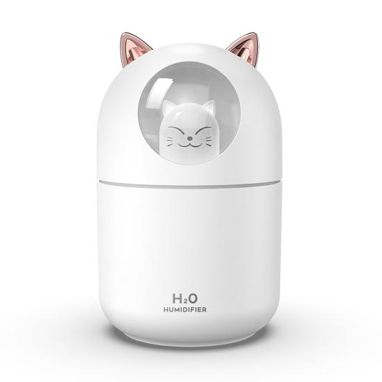 USB-увлажнитель воздуха с большой емкостью, 2 режима распыления, автоматическое выключение, низкий уровень шума, в форме кошки белый