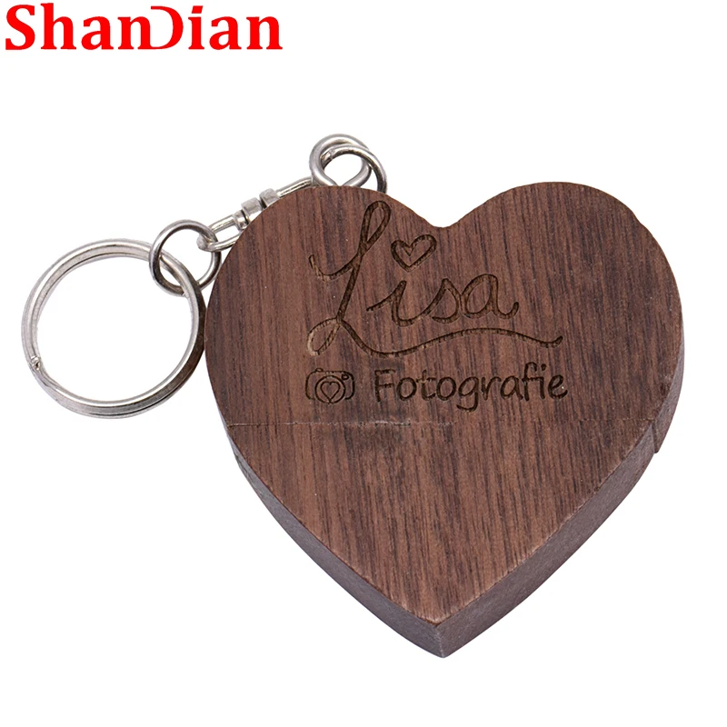 USB-флеш-накопитель в виде сердца с бесплатным логотипом, 128 ГБ, брелок для ключей, деревянные флэшки, 64 ГБ, карта памяти, кленовый U-диск, креати...