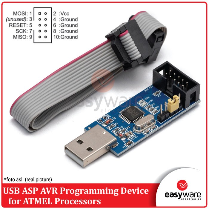 The USB ASP AVR Programming Device for ATMEL processors is a USB in-circuit programmer for Atmel AVR controllers. USB ASP AVR Programming Device for ATMEL Processors simply consists of an ATMega88 or an ATMega8 and a couple of passive components. The programmer uses a firmware-only USB driver; no special USB controller is needed.