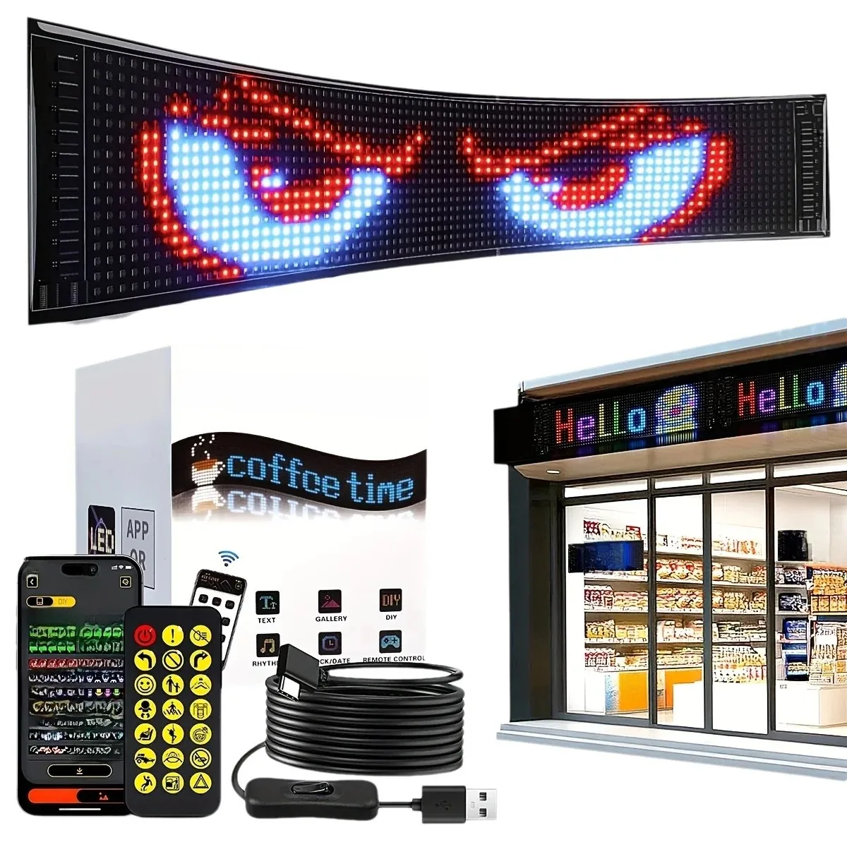 USB Flexible LED Matrix Scrolling Advertising LED Sign Panel Bluetooth App Control DIY Car Rear Window Logo Light Sign