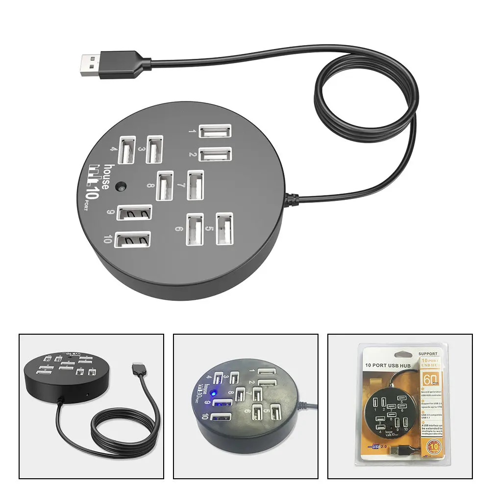 USB Hub 10-Port High-Speed Data Hub Multi-Port Splitter USB Extender for Laptop External Hard Drive Mouse Keyboard
