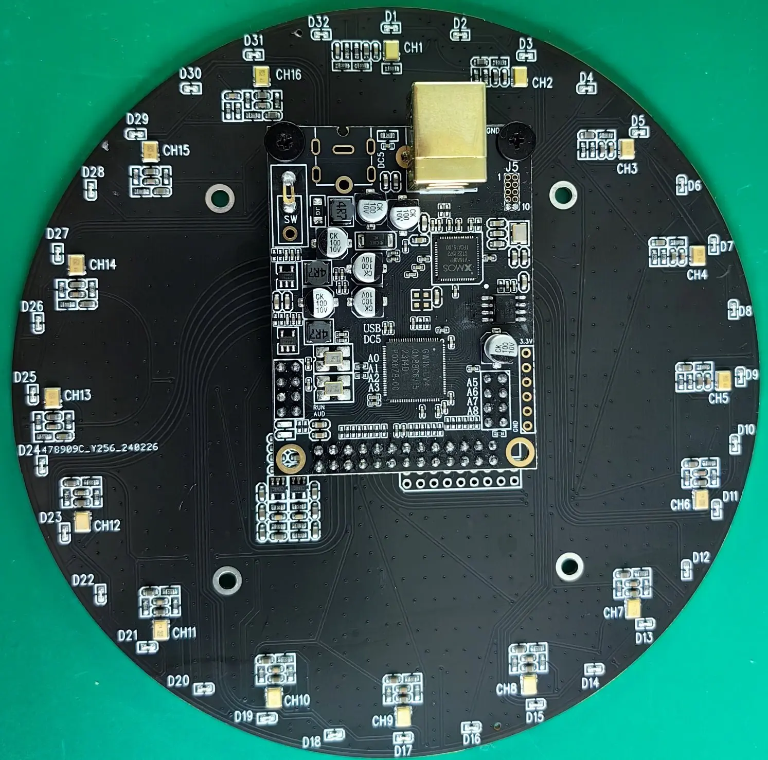 USB Sound Card with Circular 16-Channel Microphone Array and 32 LED Directional Indicators