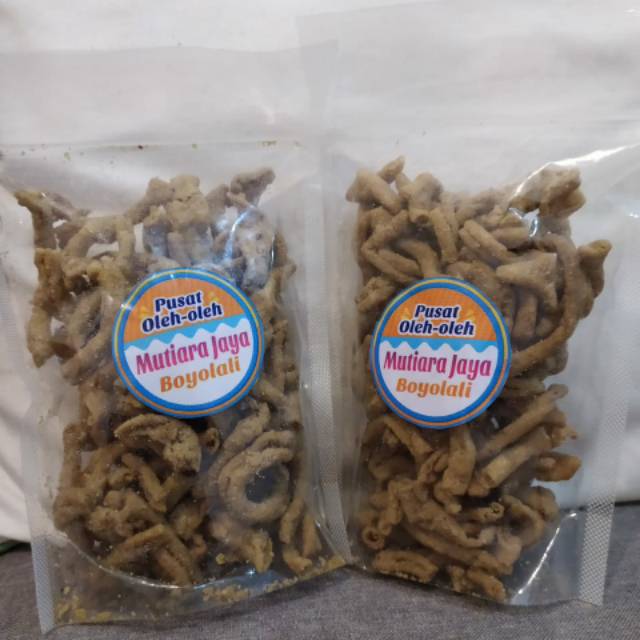Keripik usus mutiara jaya khas boyolali, sangat gurih, renyah, lembut dan tidak bikin sakit tenggorokan, berat 200 gr