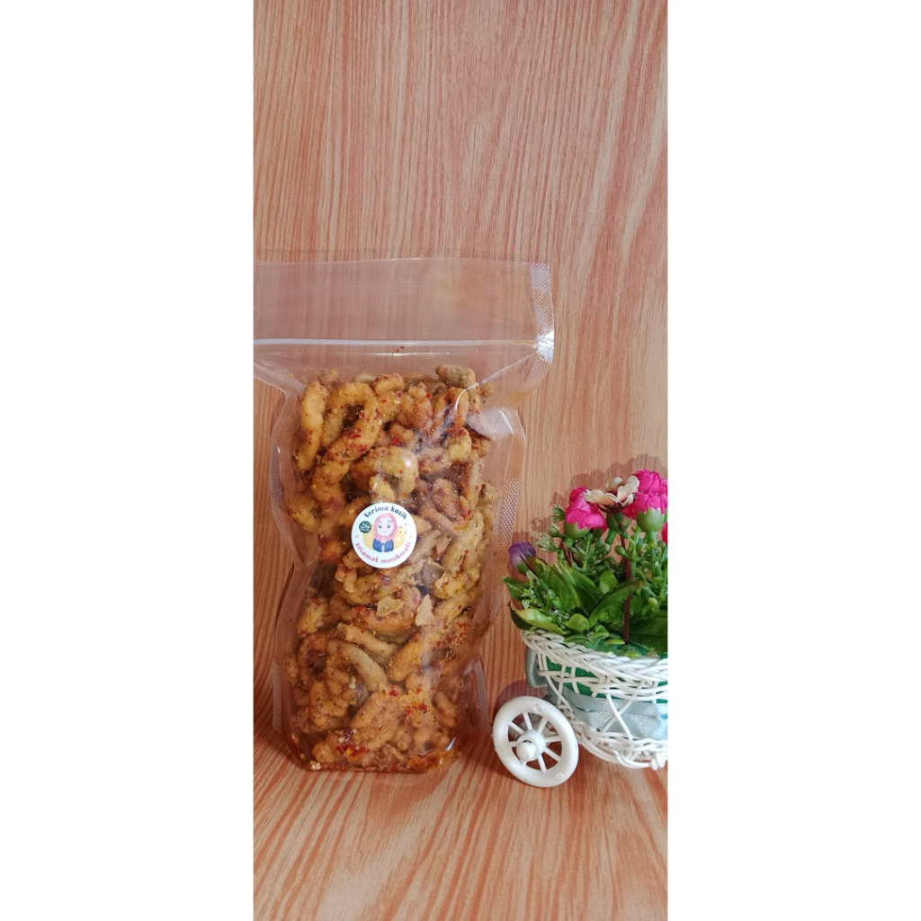 usus krispi ada 2 varian rasa original dan pedas berat 250gram dan 300 gram rasanya enak gurih tidak bau amis