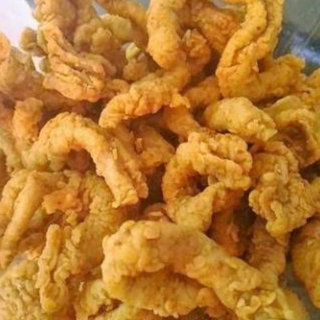 Keripik usus adalah keripik temuan terbaru yang terbuat dari baku usus ayam pilihan yang berkualitas.